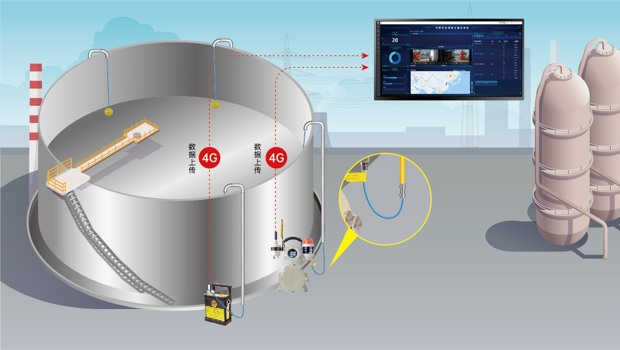 工業企業浮頂儲罐的重大危險源眾多,且監測水平參差不齊,無法保證浮頂儲罐區域作業前后以及常規的定期檢查中對氣體的連續檢測,這樣就會造成重大危險源安全隱患,不提前預防預警,會給企業以及作業人員,造成難以估量的損失。